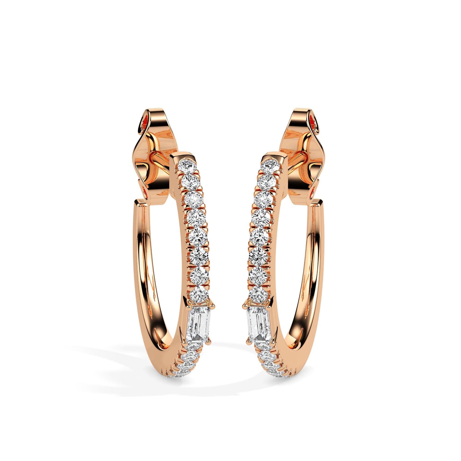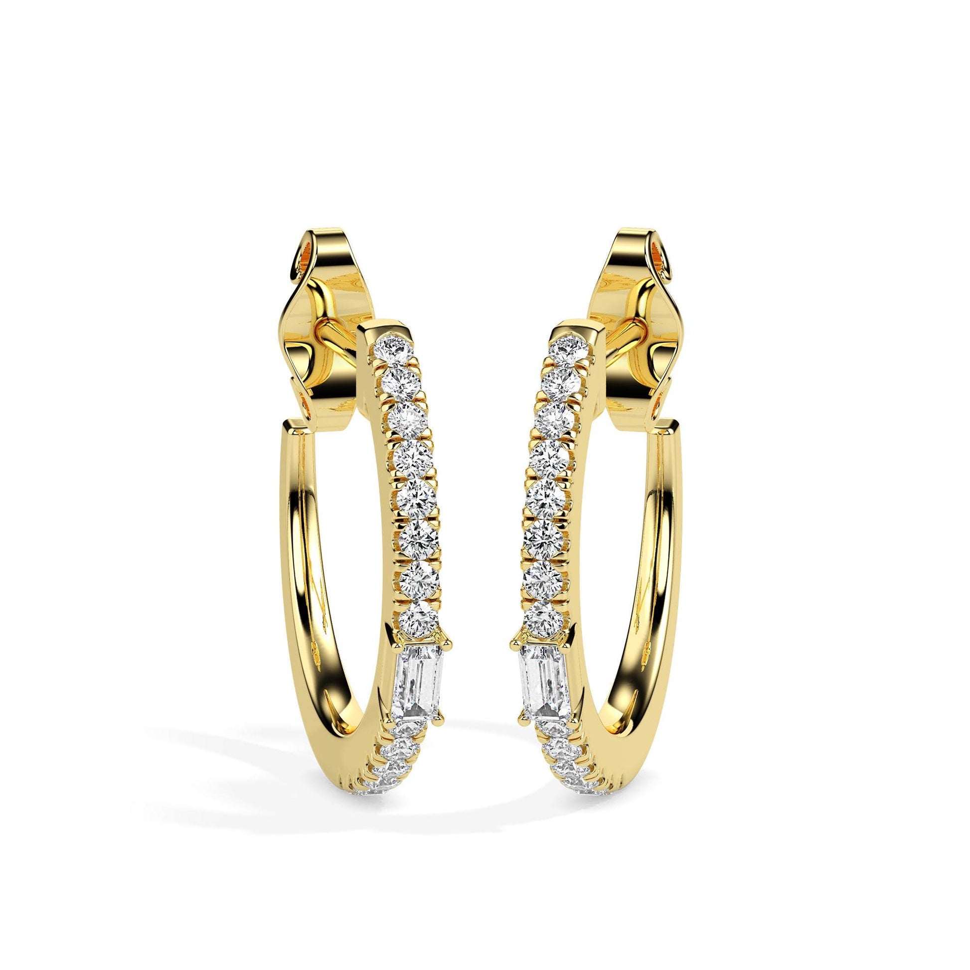 Style: Baguette & Round Diamond Hoops