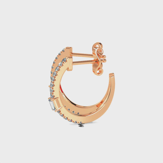 Modern hoop earrings featuring alternating baguette-cut and round brilliant lab-grown diamonds. Sleek and geometric, they combine bold style with timeless sparkle for everyday elegance or special occasions.