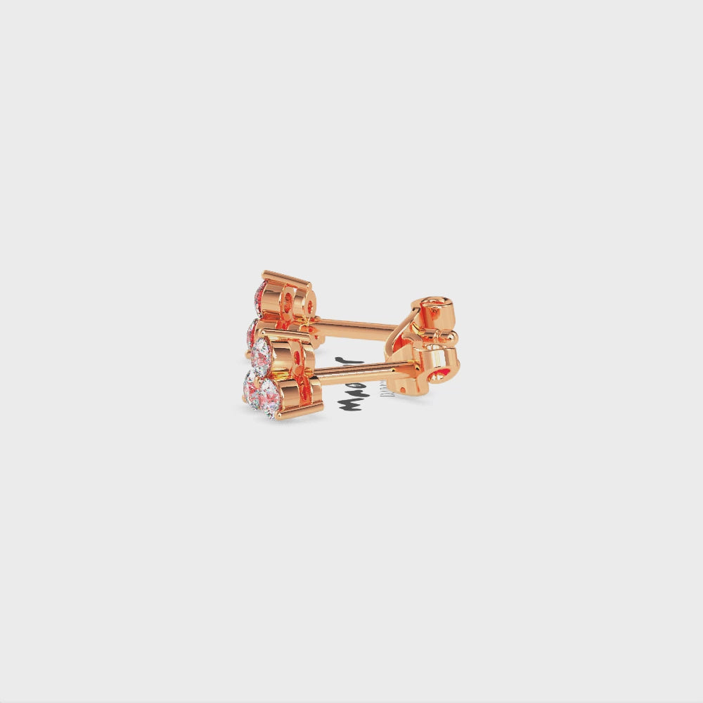 Minimalist trinity studs featuring three round brilliant lab-grown diamonds arranged in a perfect triangle. A timeless symbol of balance, harmony, and unity with elegant everyday sparkle.