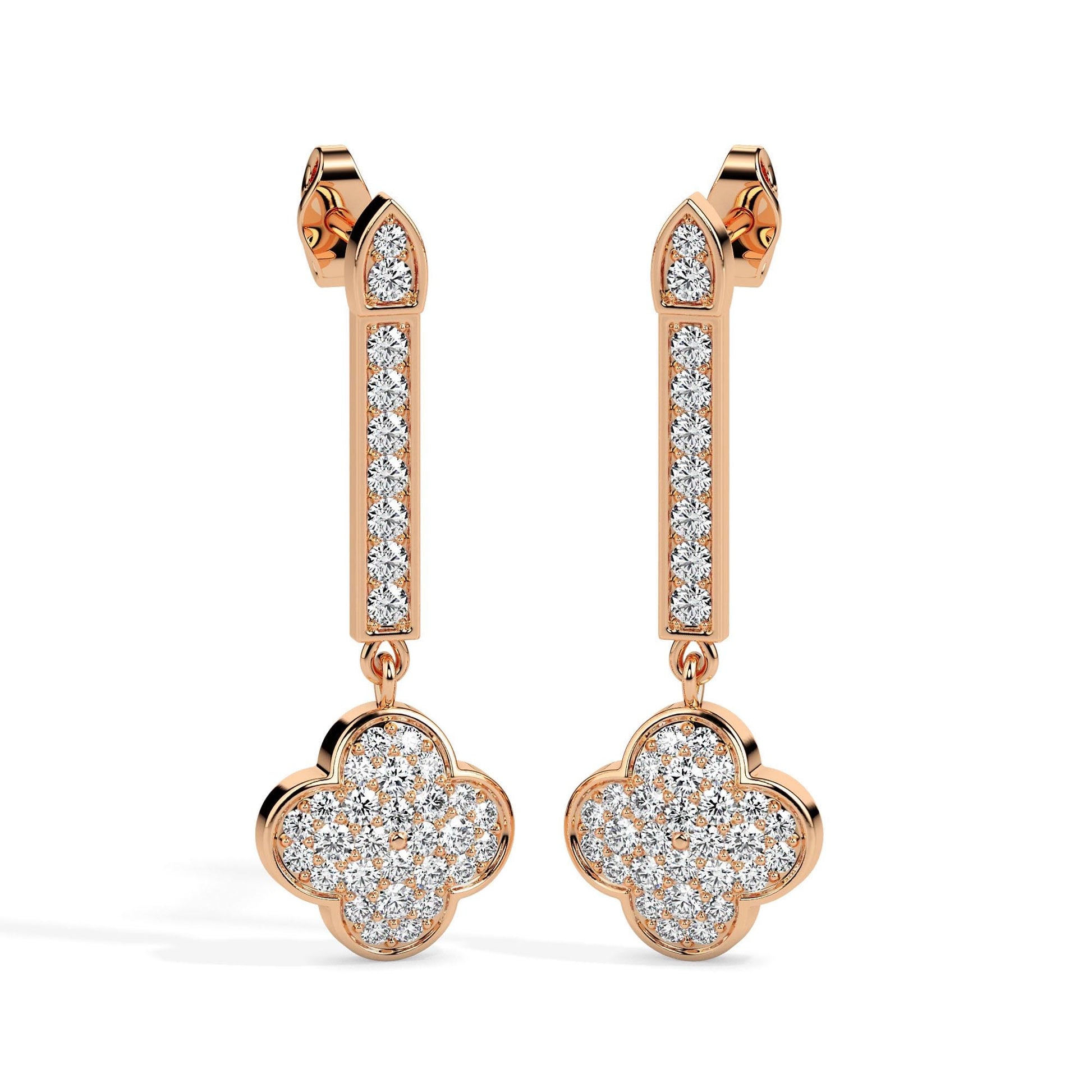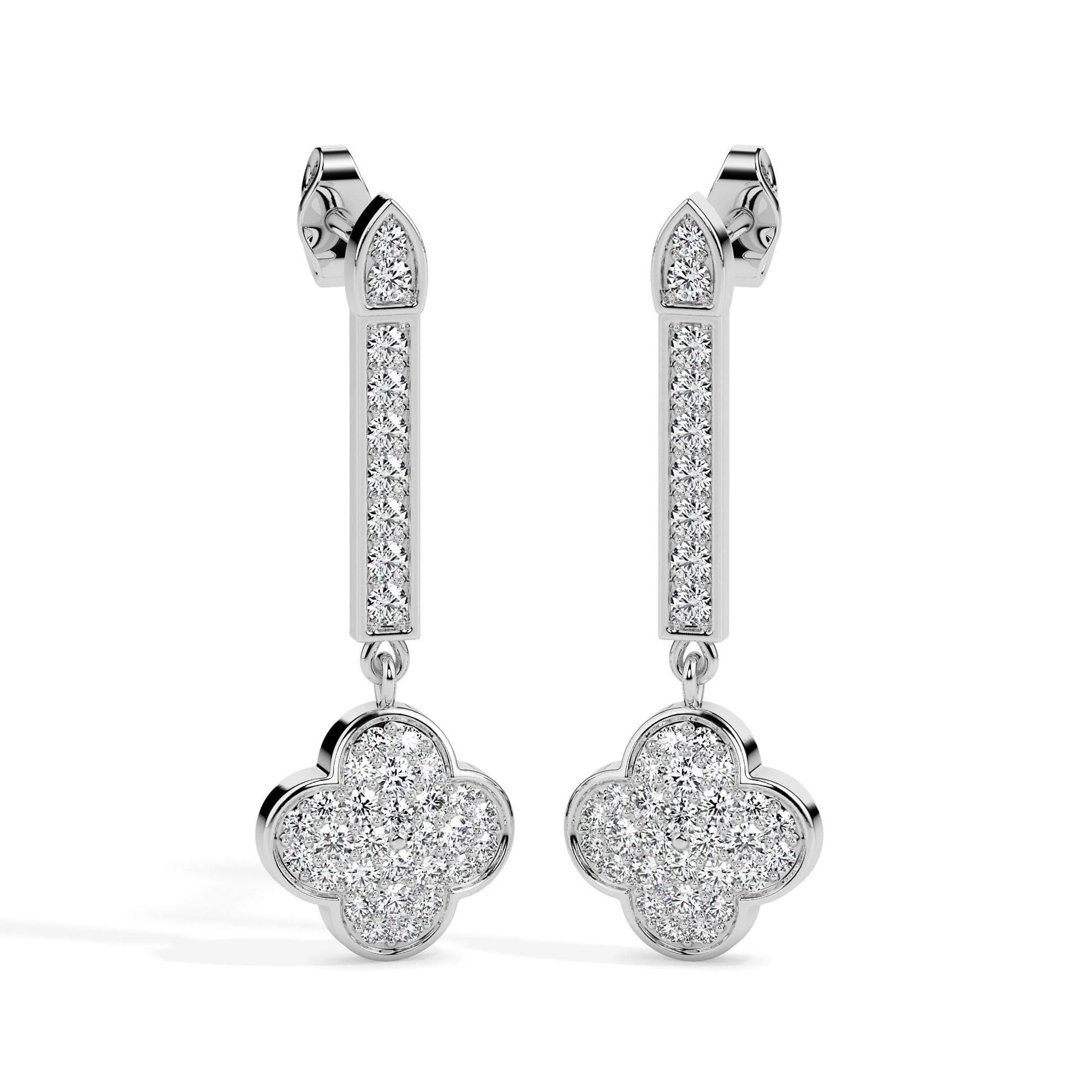 Elegant clover-inspired drop earrings featuring pavé-set lab-grown round brilliant diamonds. Suspended from a diamond-encrusted bar, they combine floral charm with timeless sparkle for everyday sophistication or special occasions.