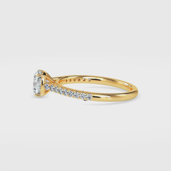 Elegant and romantic, this Cushion Cut Engagement Ring features a brilliant lab-grown cushion diamond set on a pavé diamond band for extra shimmer. Its softly rounded edges and refined sparkle make it a classic yet modern choice for lasting love.