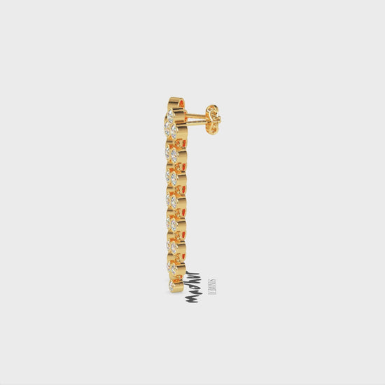 Long cascading drop earrings featuring bezel-set clusters of three round brilliant lab-grown diamonds linked in a vertical flow. Designed for fluid movement and radiant sparkle, they bring elegance to evening, bridal, or everyday glamour.