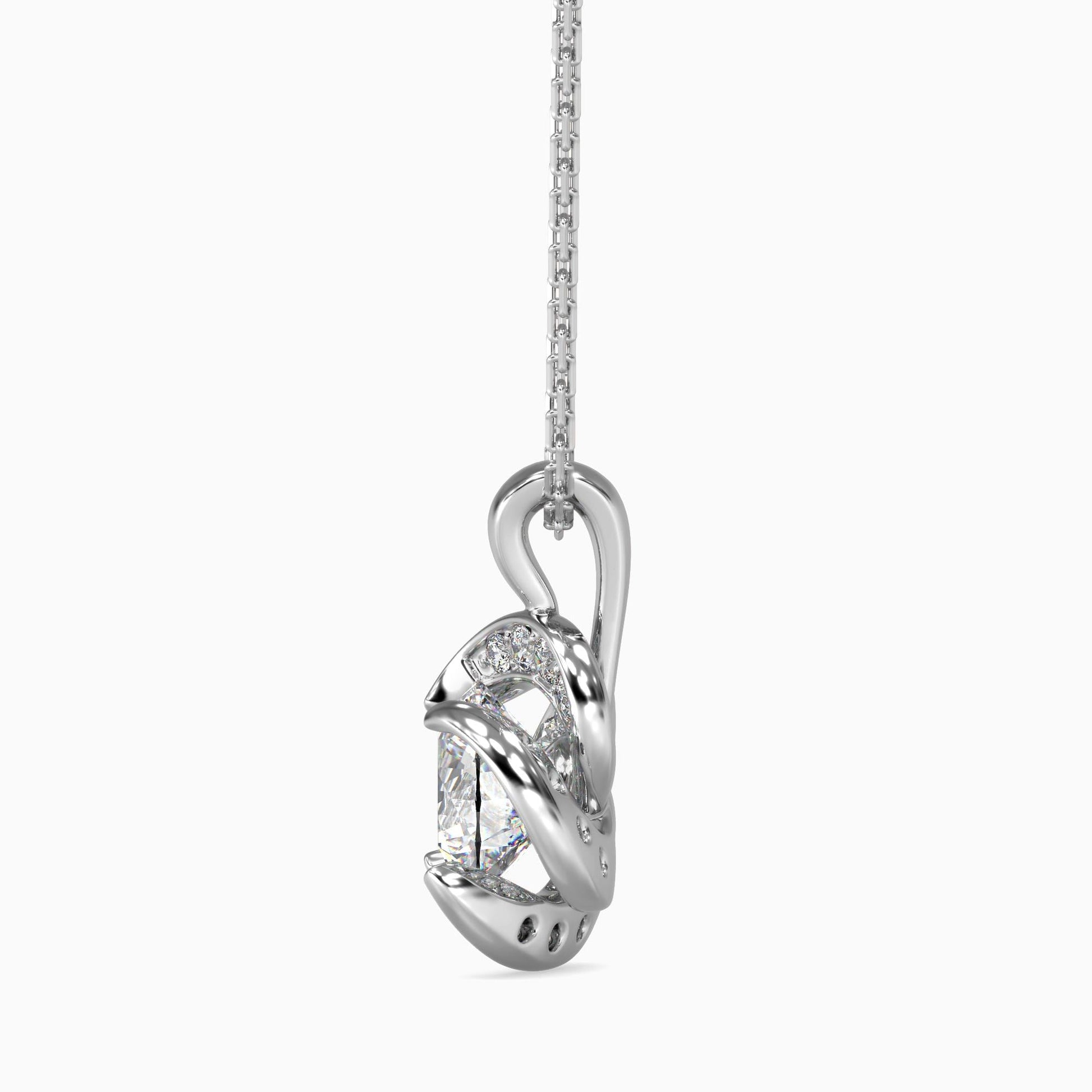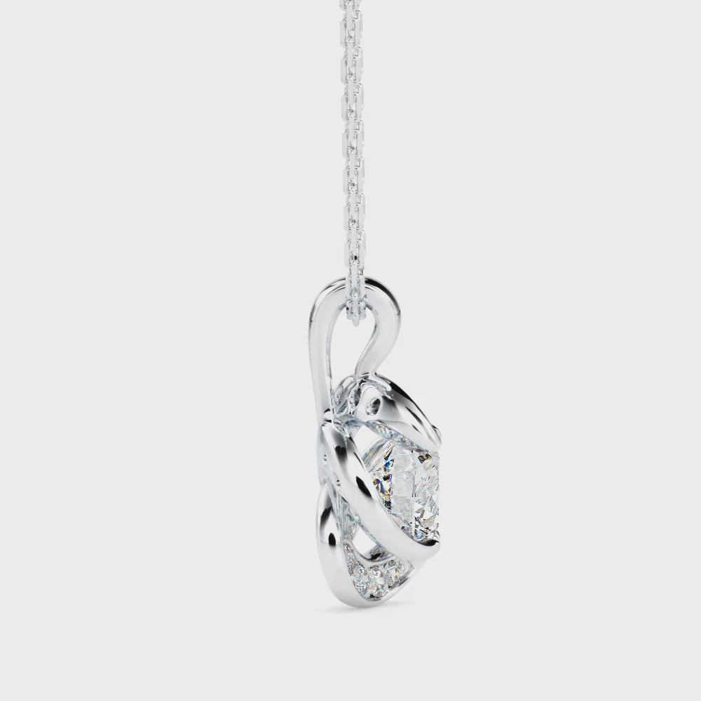 Delicate floral-inspired pendant featuring a brilliant round lab-grown diamond at the center, encircled by a graceful halo of accent stones. A radiant bloom of sparkle that’s elegant, timeless, and meaningful.