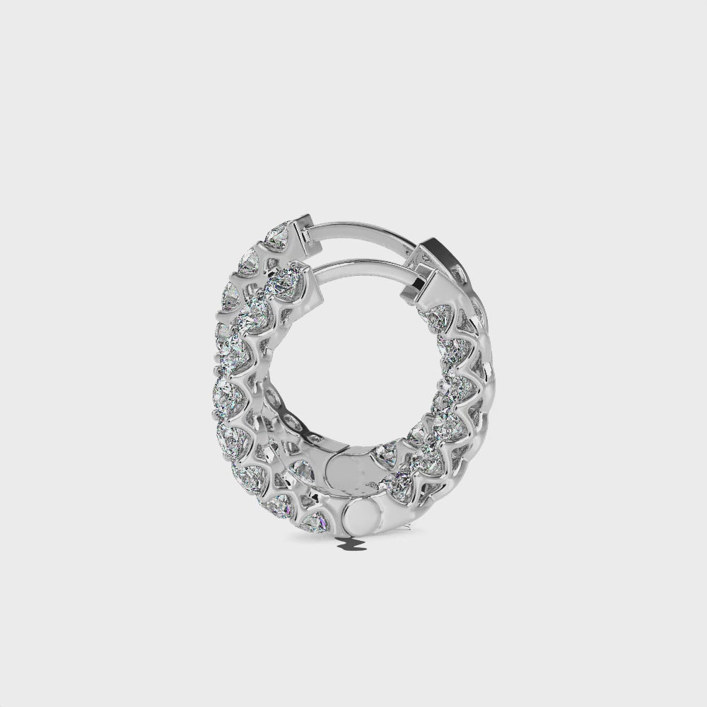 Classic inside-out hoop earrings featuring lab-grown round brilliant diamonds set along both the outer and inner surfaces for 360° sparkle. A modern shared-prong setting ensures maximum brilliance with effortless sophistication.