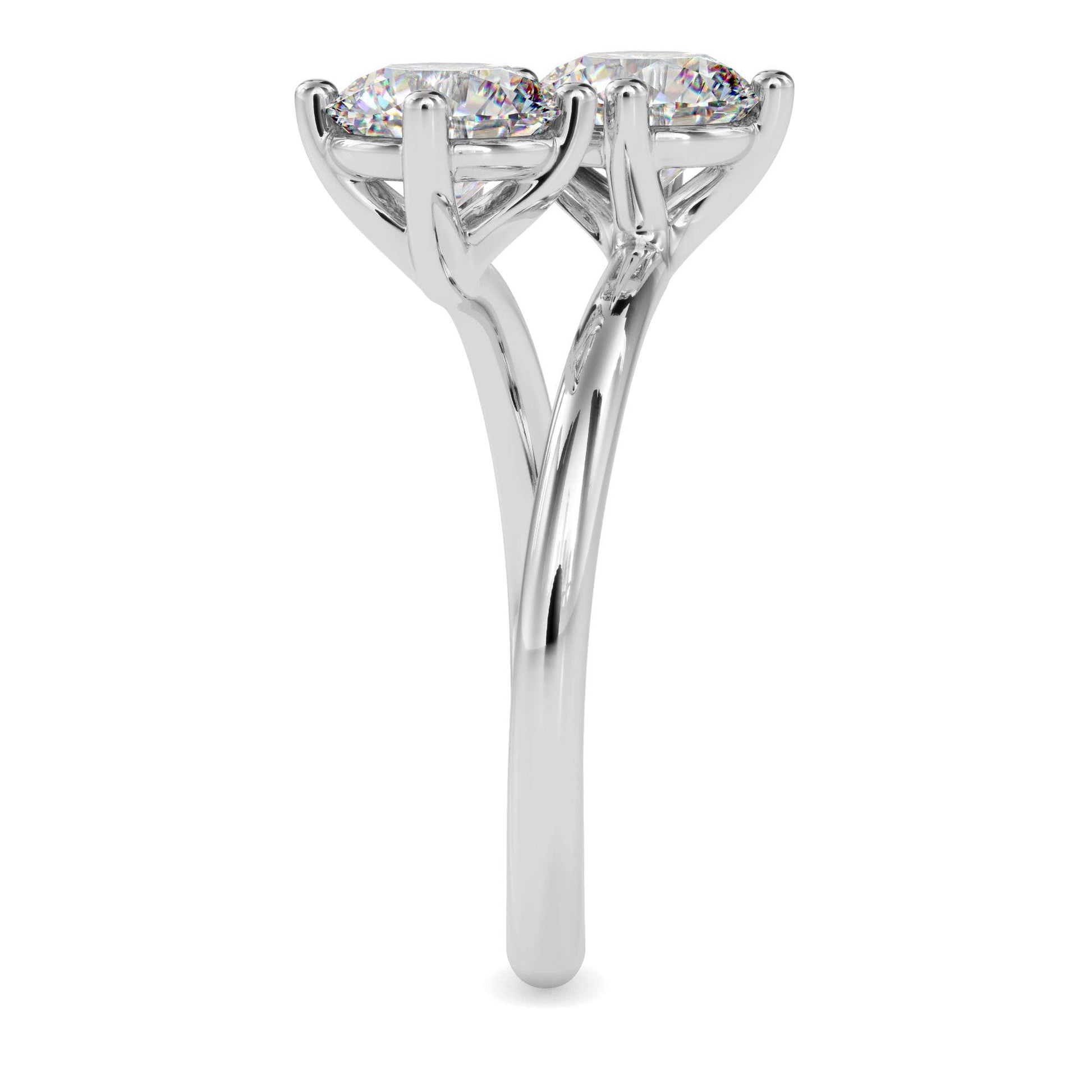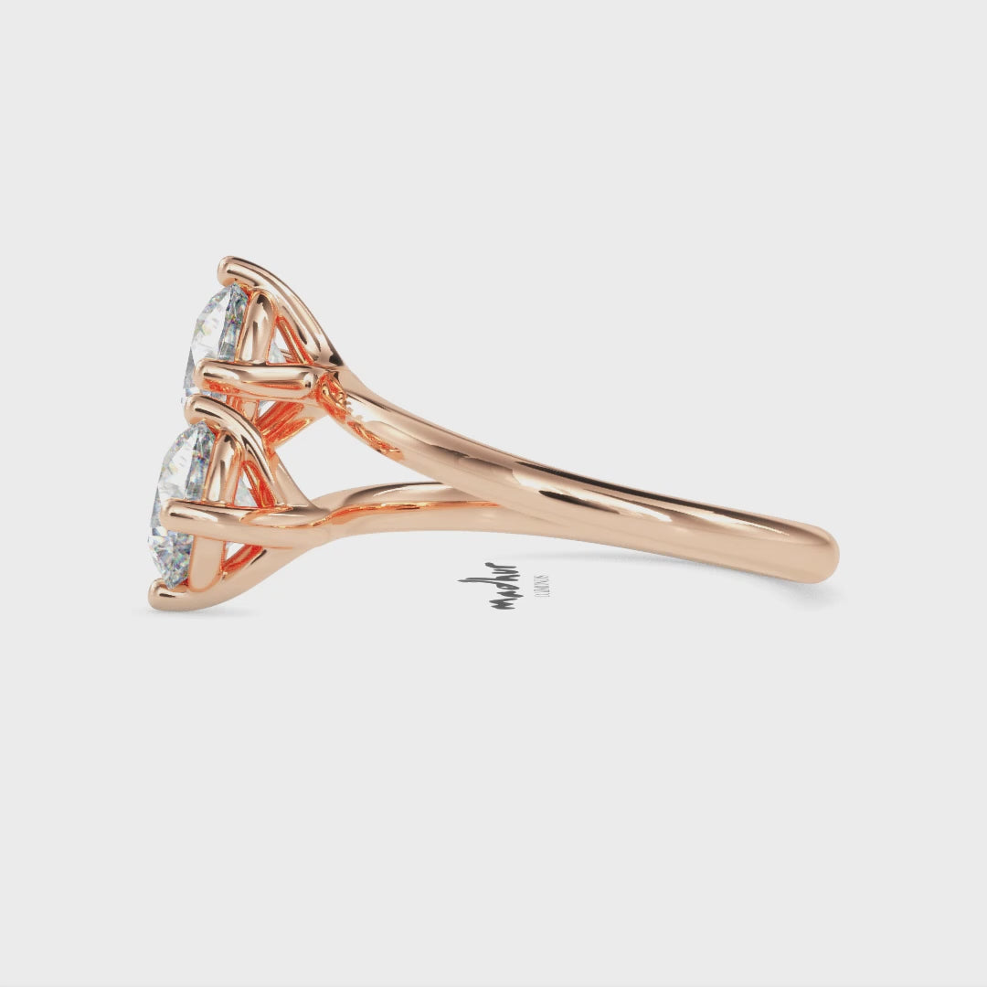 A timeless two-stone ring featuring matched round brilliant lab-grown diamonds set on a sleek open band. Elegant and symbolic, this design represents two radiant souls forever connected.