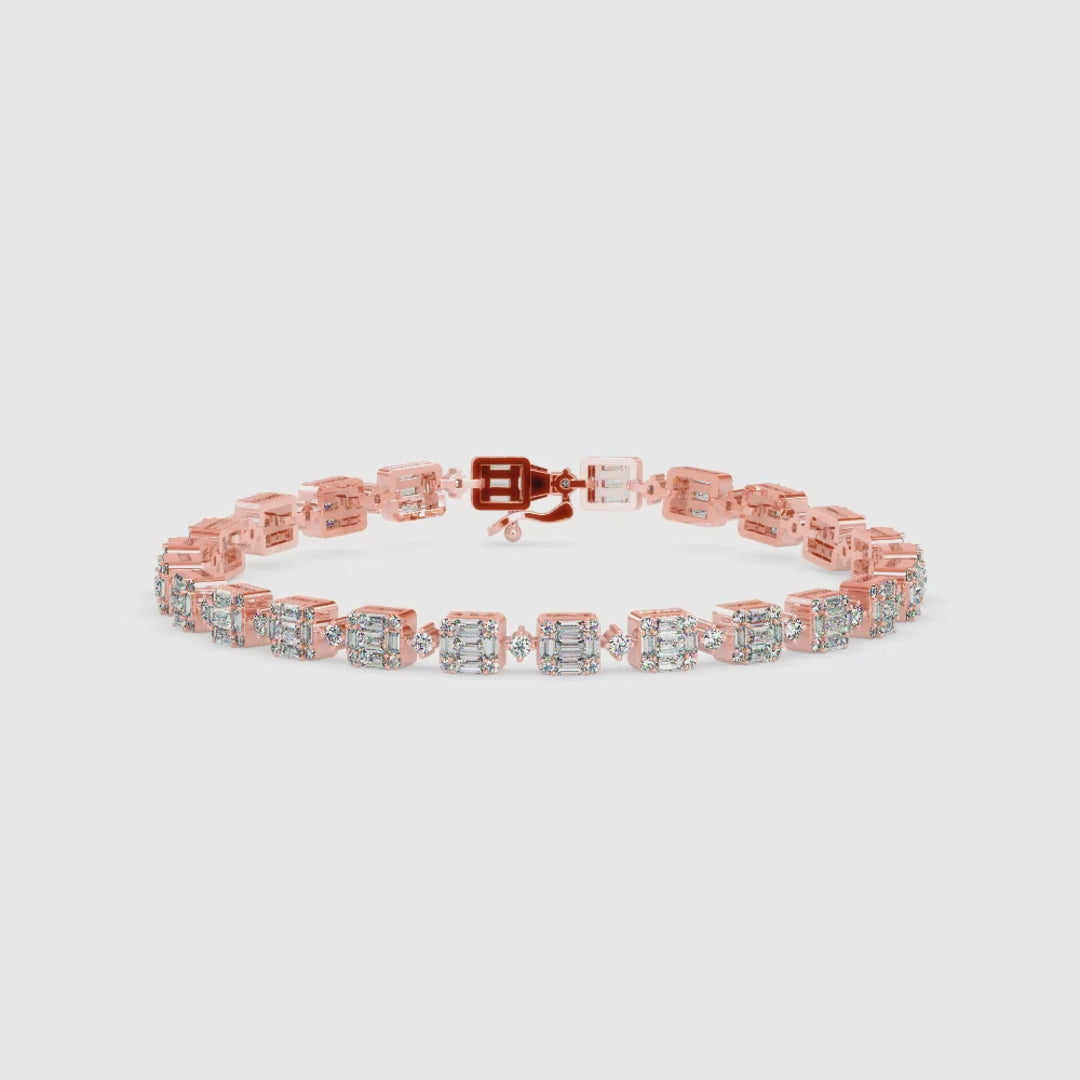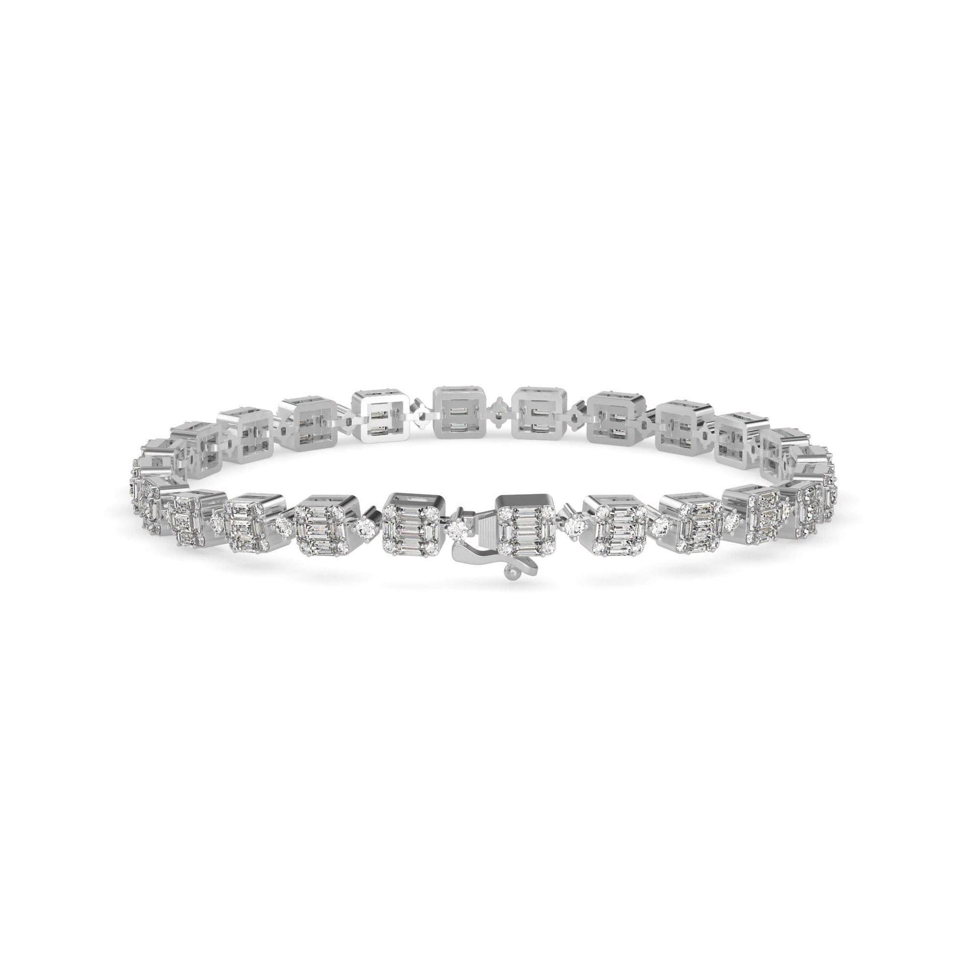 Style: Emerald-Cut Cluster Diamond Tennis Bracelet