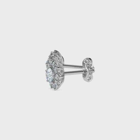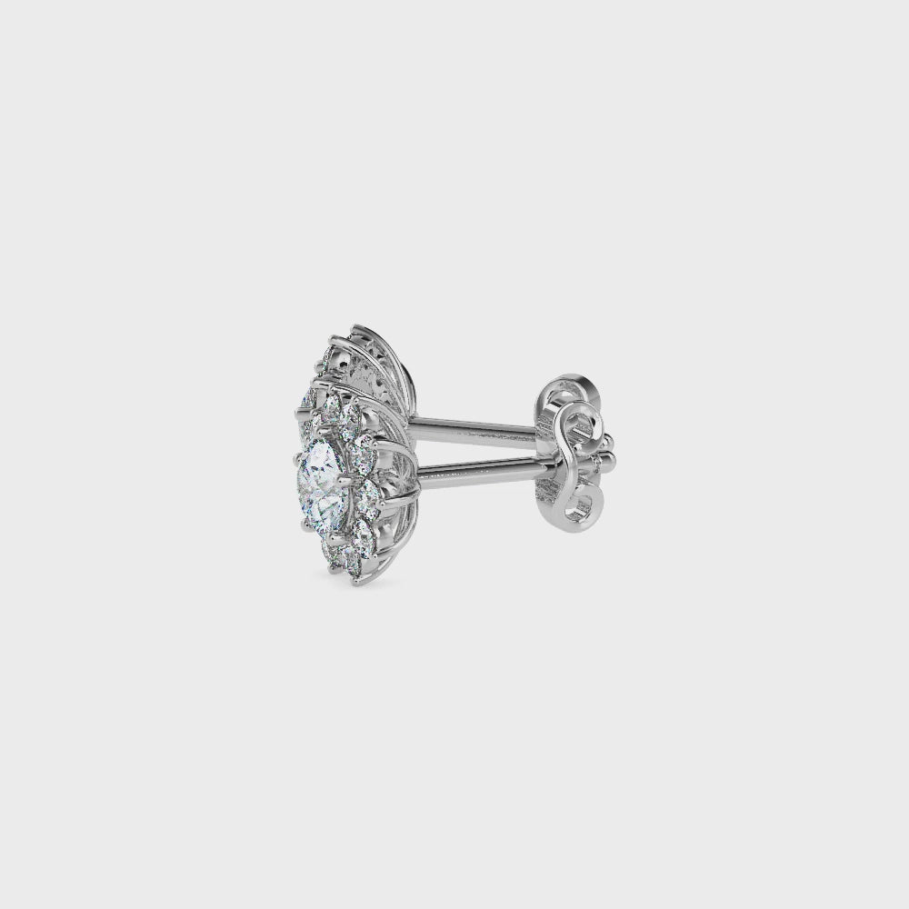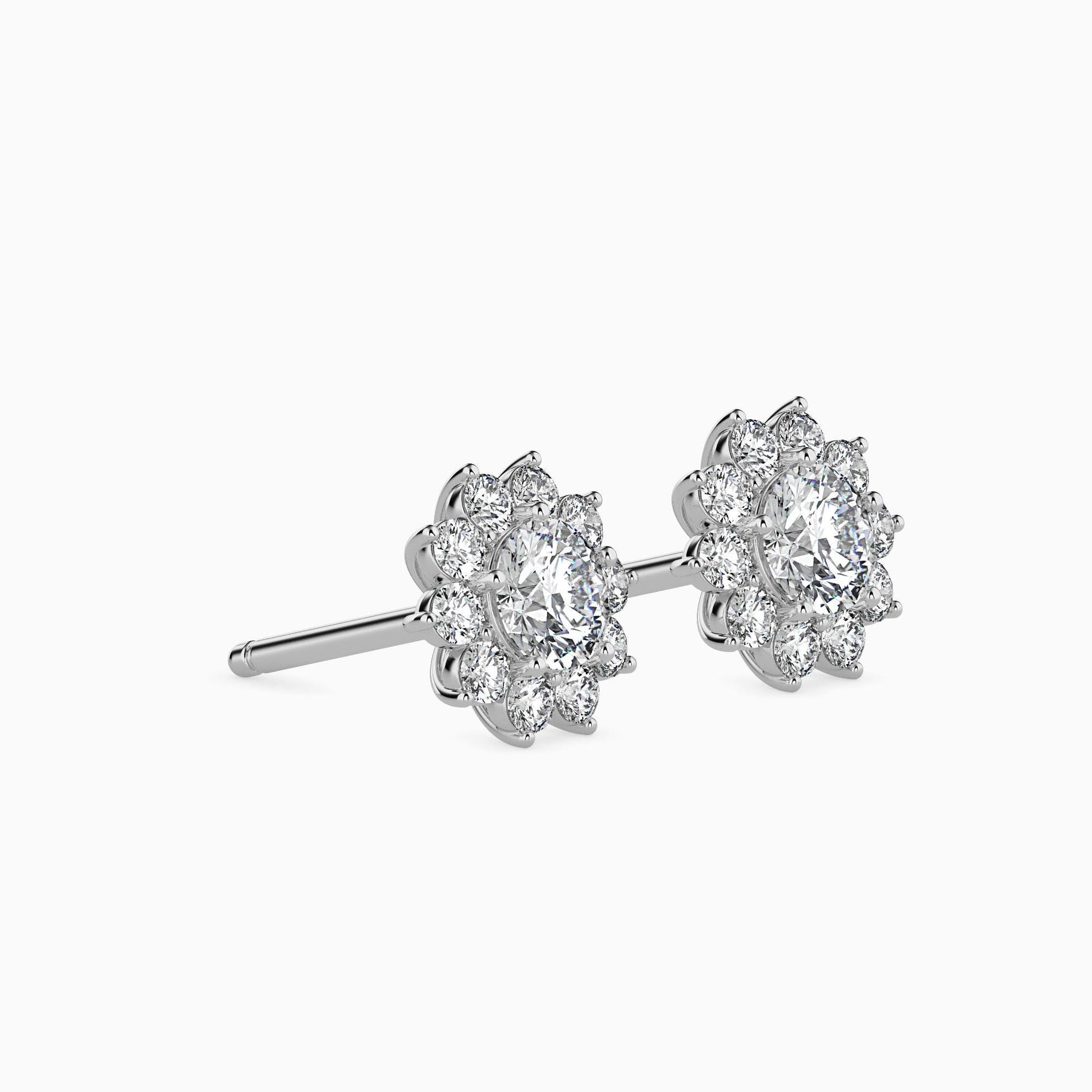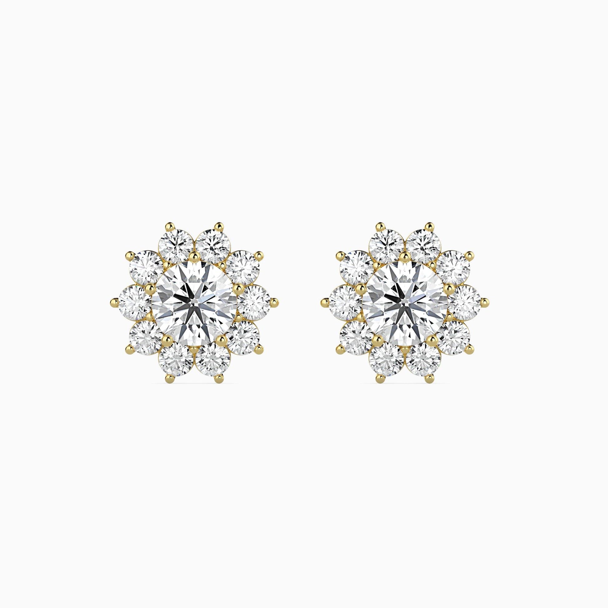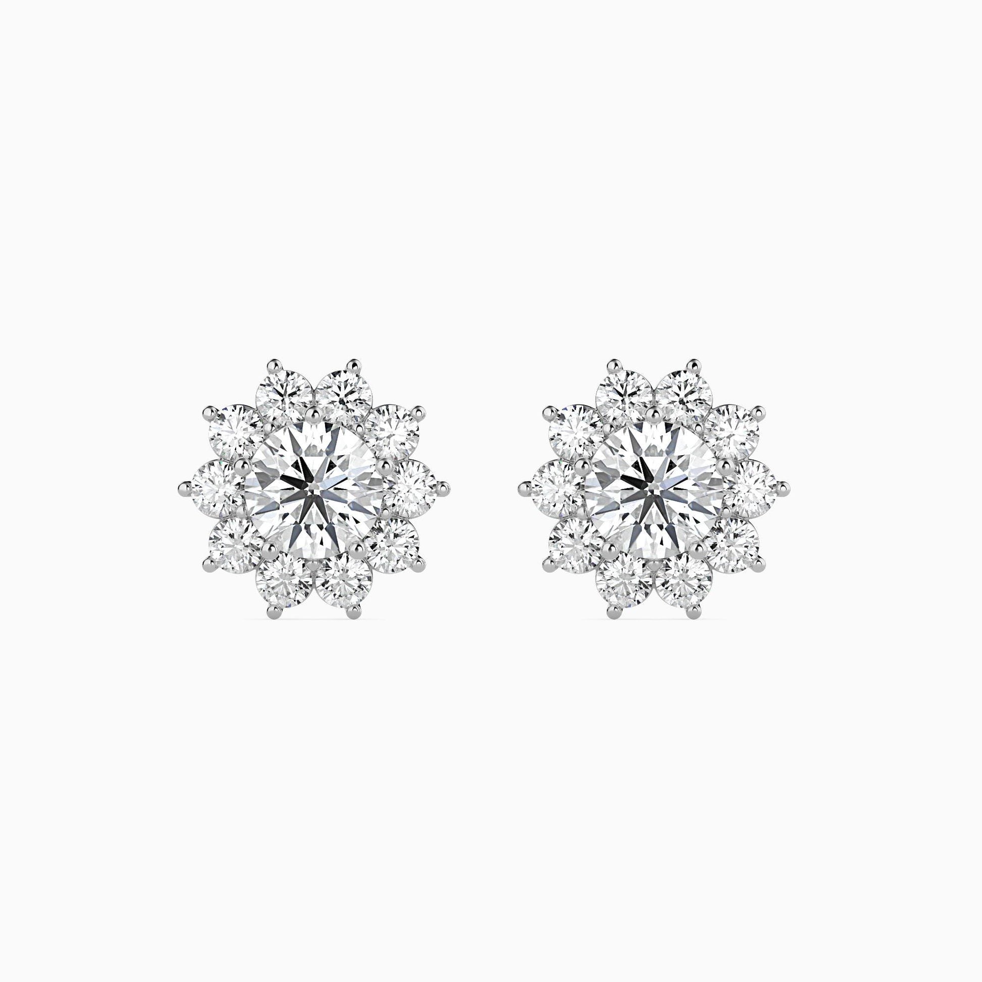 Floral-inspired halo studs featuring a round brilliant lab-grown diamond center encircled by a radiant halo. Elegant and versatile, they bloom with brilliance for everyday wear or special occasions.