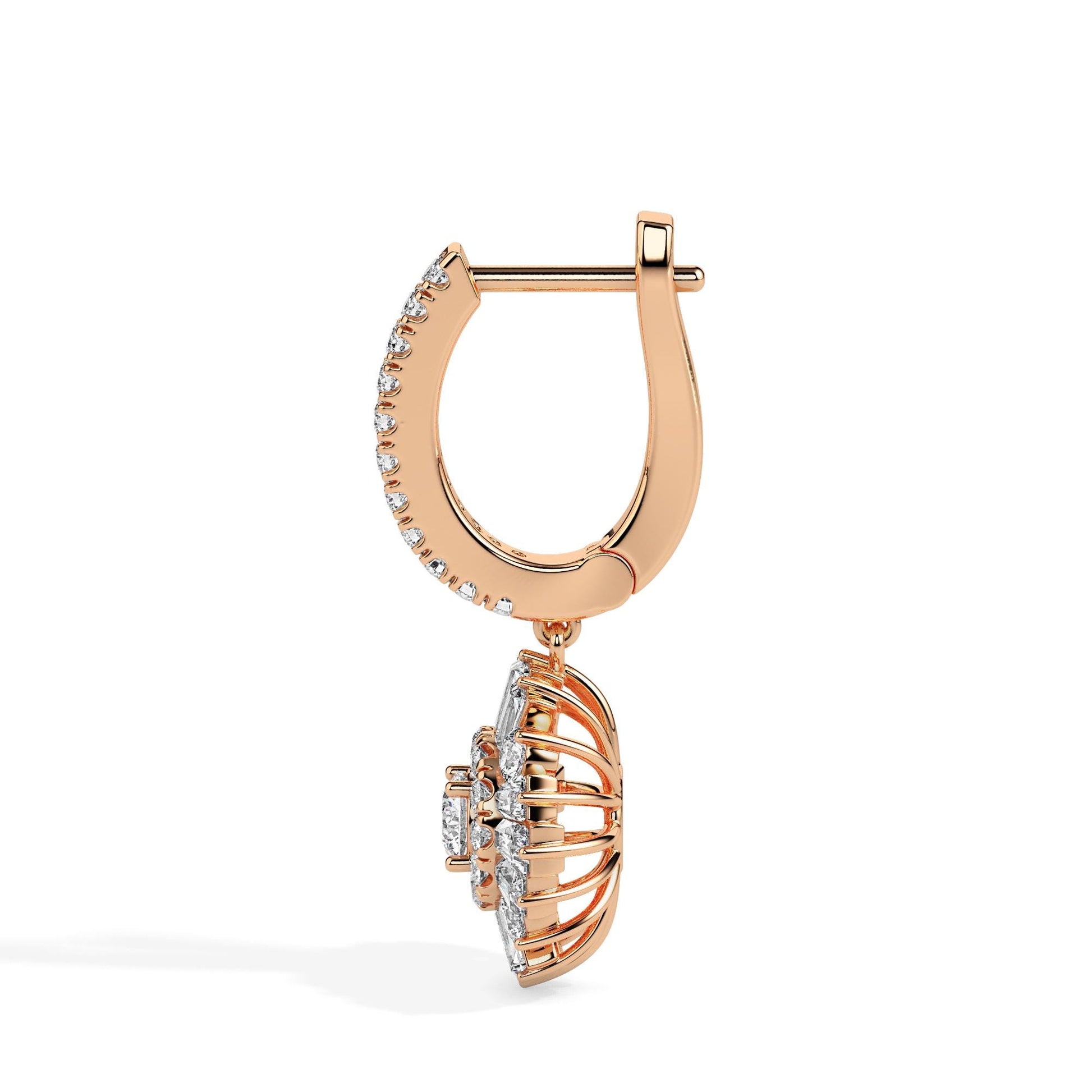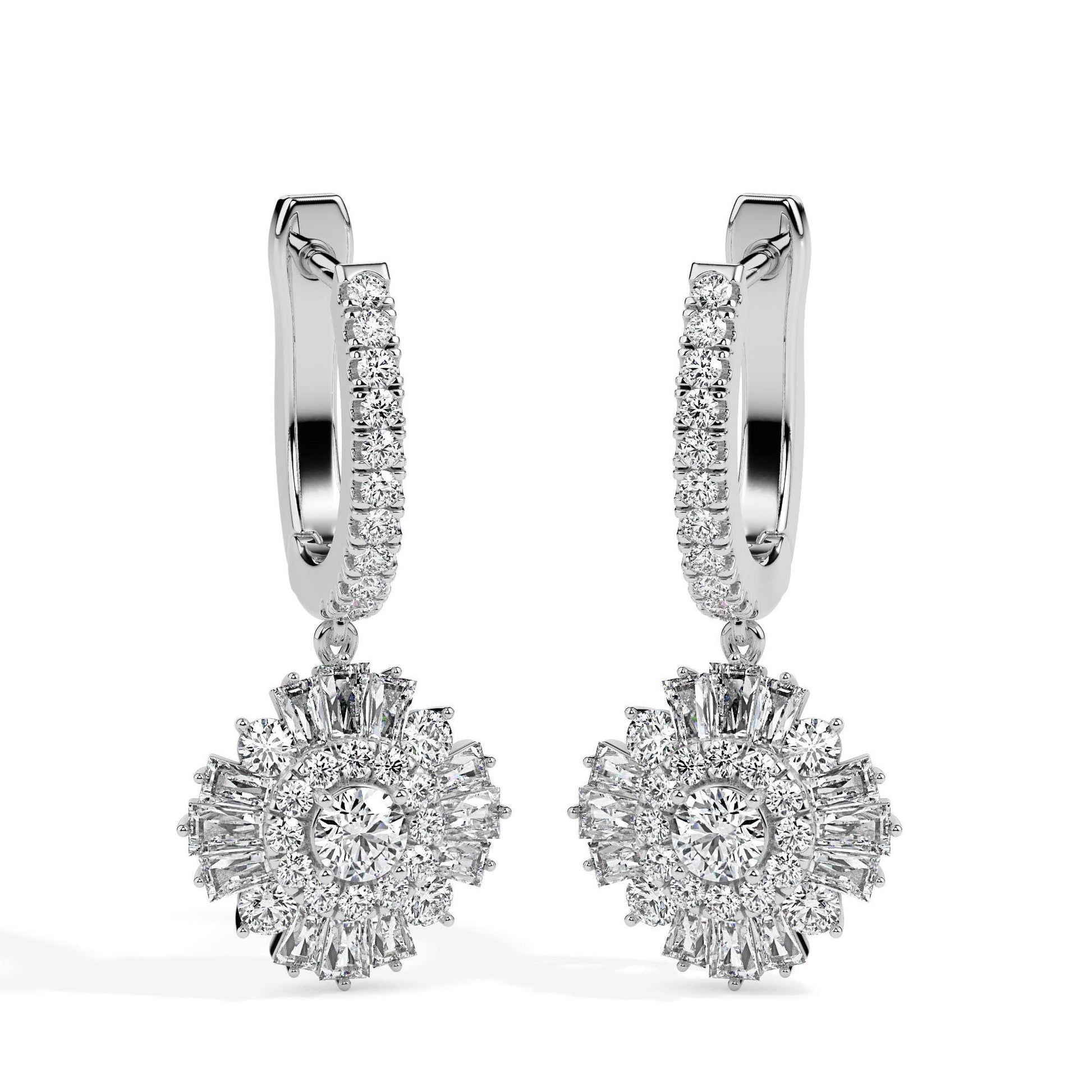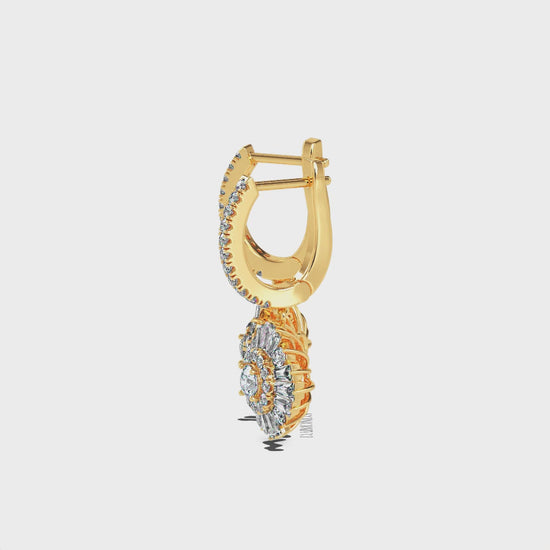 Bloom-inspired drop earrings featuring a floral halo of round and baguette-cut lab-grown diamonds suspended from pavé-set hoops. Elegant and radiant, they bring artistry and brilliance to any occasion.