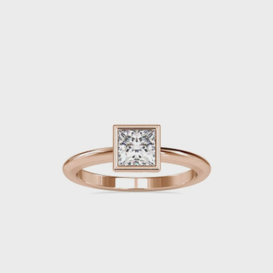 A sleek, contemporary take on a timeless classic. This solitaire ring features a 1.50 ct lab-grown princess-cut diamond in a secure bezel setting, highlighting its bold geometry and brilliant sparkle. Crafted in solid 18K or 14K gold (Rose, White, or Yellow), the high-polish comfort-fit band offers modern elegance for engagements, anniversaries, or everyday wear.