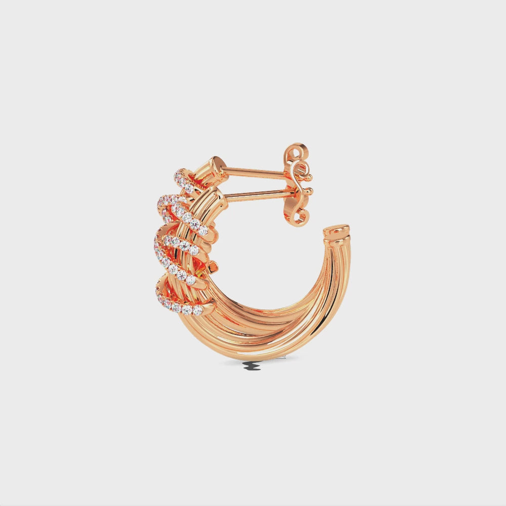Bold ribbed gold hoops wrapped in a spiral of pavé-set lab-grown round diamonds, creating a ribbon-like effect with depth, texture, and sparkle. A sculptural statement piece for modern elegance.