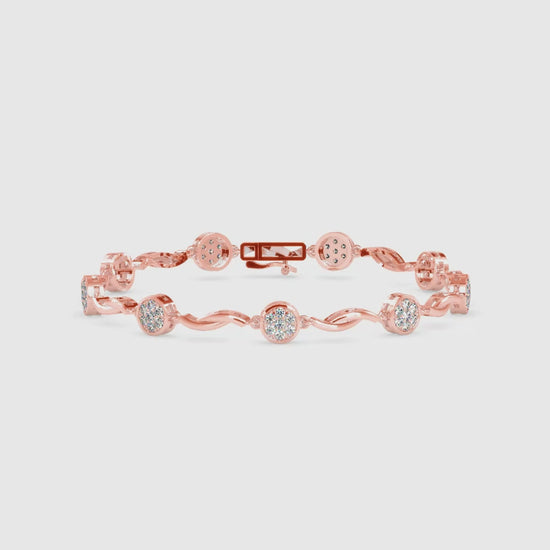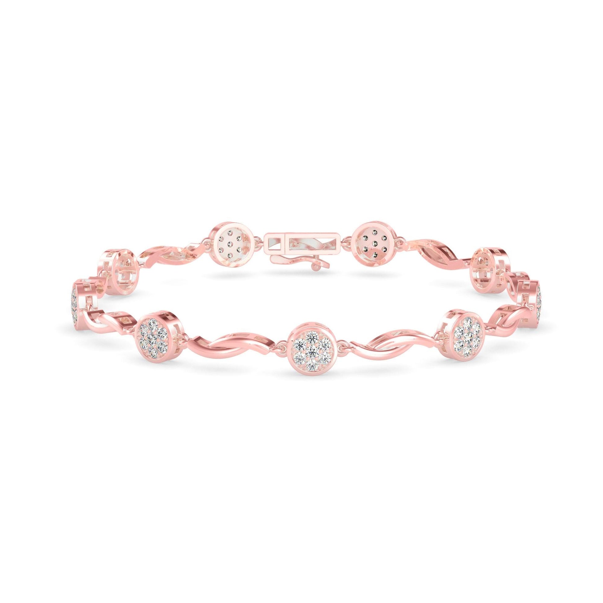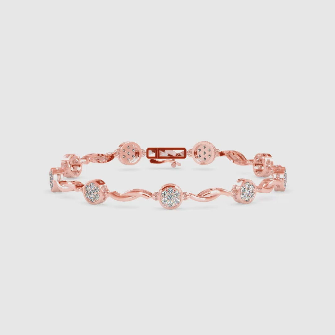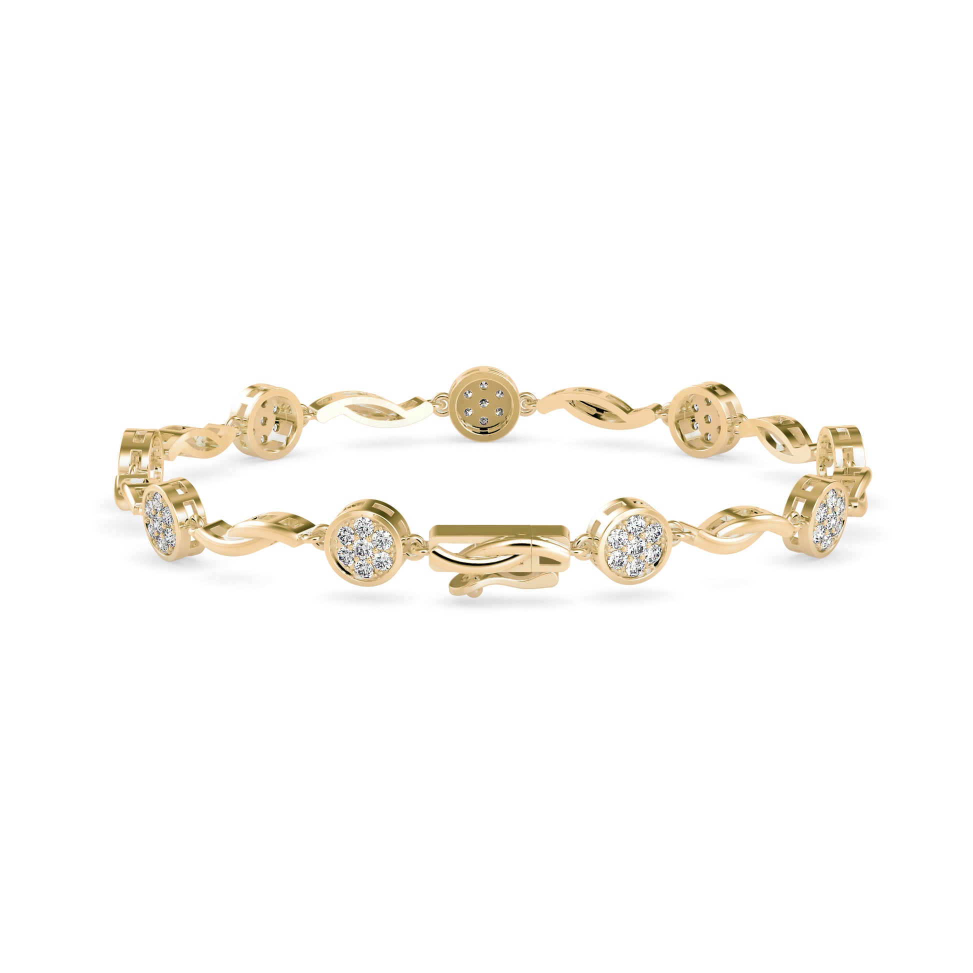 Graceful, modern, and timeless — this bracelet features round bezel-set diamond clusters linked with elegant twisted gold motifs, symbolizing harmony and eternal connection. A perfect blend of brilliance and artistry, it radiates sophistication for both daily wear and special occasions.