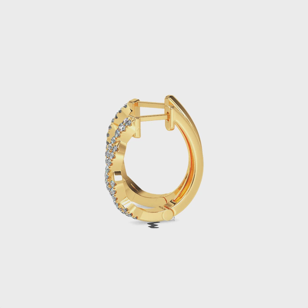 Elegant twisted hoop earrings featuring a double row of Pavé-set lab-grown round brilliant diamonds in a graceful wave pattern. Lightweight yet radiant, they deliver modern glamour with timeless sophistication.